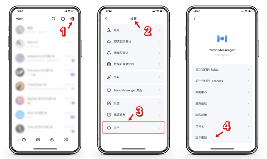 Mixin 相關問題:1.Mixin 支持的系統;2.如何更新Mixin Messenger;3.如何查看當前Mixin Messenger 的版本;4.如何登出Mixin 賬號。