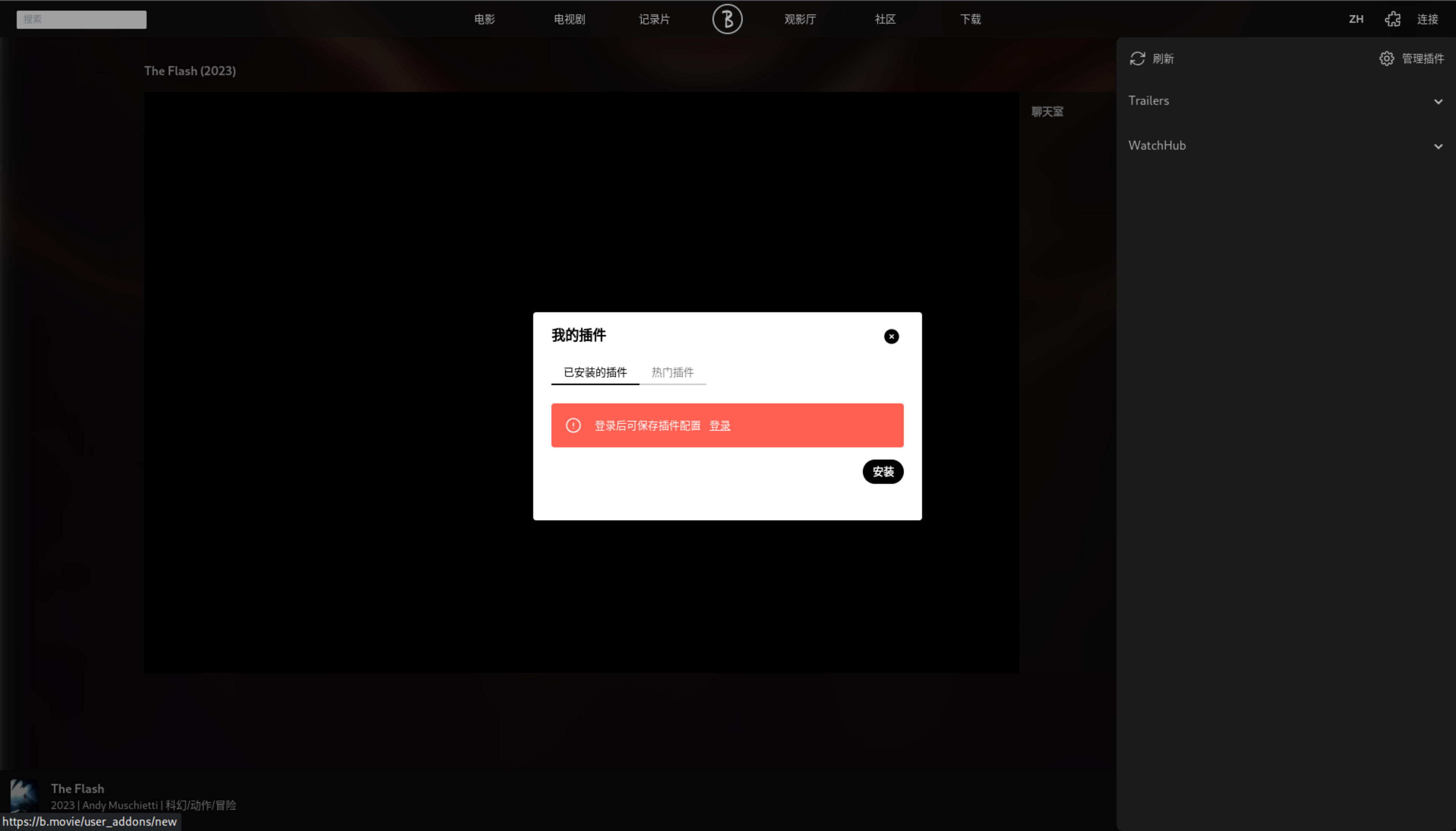 第一次进入播放页面时,你会发现什么也播放不了。这是因为 BEE 本身并没有提供任何视频资源,播放是通过第三方插件实现的。