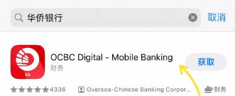 直接在苹果应用商城 App Store ,搜索华侨银行或OCBC Digital进行安装。(一定要在APP中开户,不要到网页版,在网页版开户不能申请实体卡)
