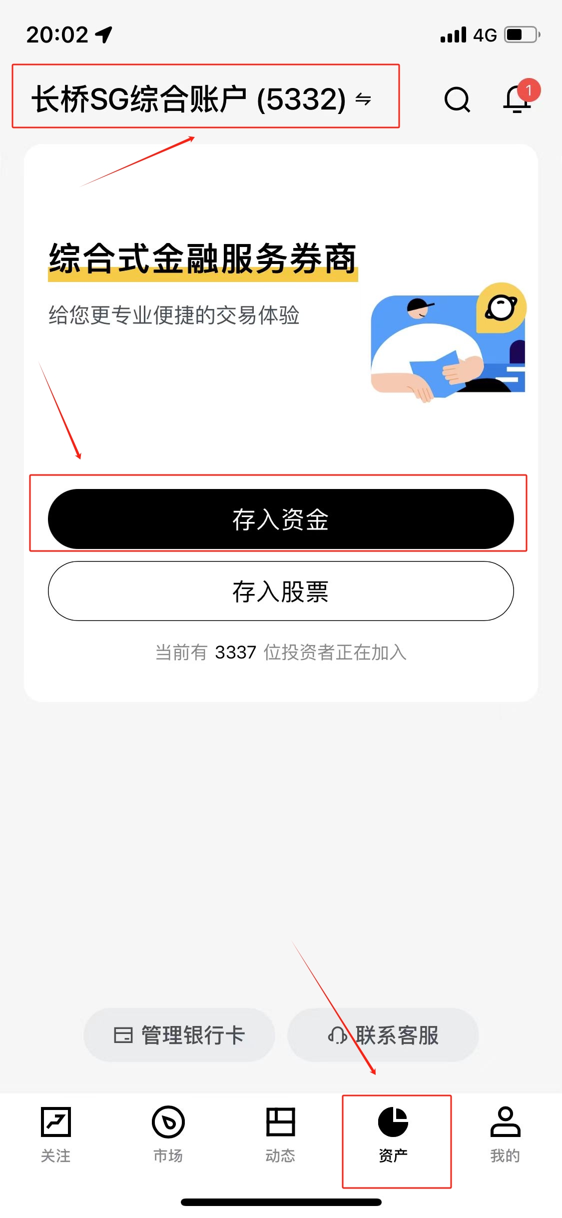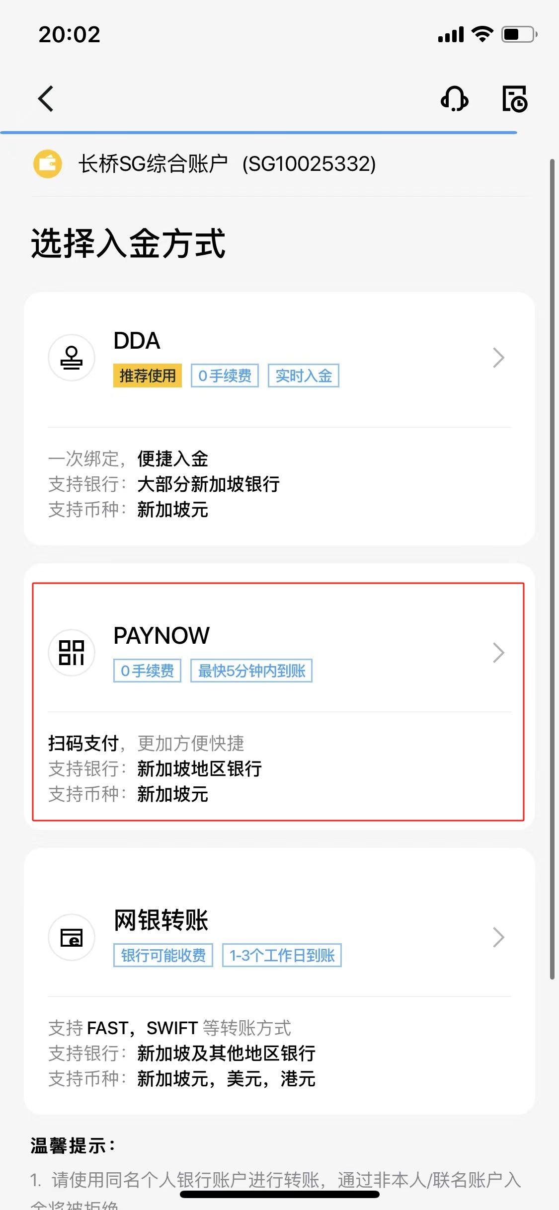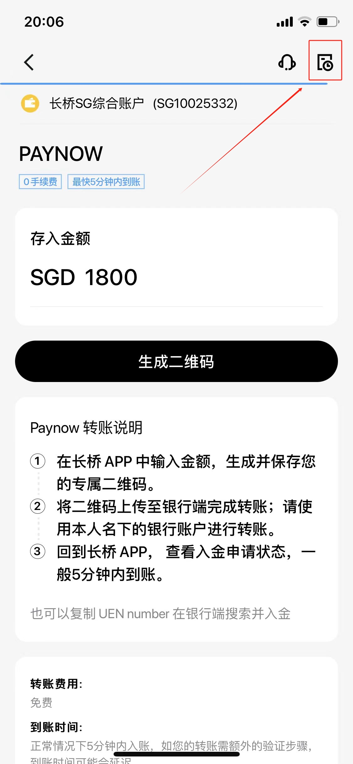 1.新加坡长桥证券,点击资产→长桥SG综合账户→入金,首次使用需要设置交易密码,按提示操作。