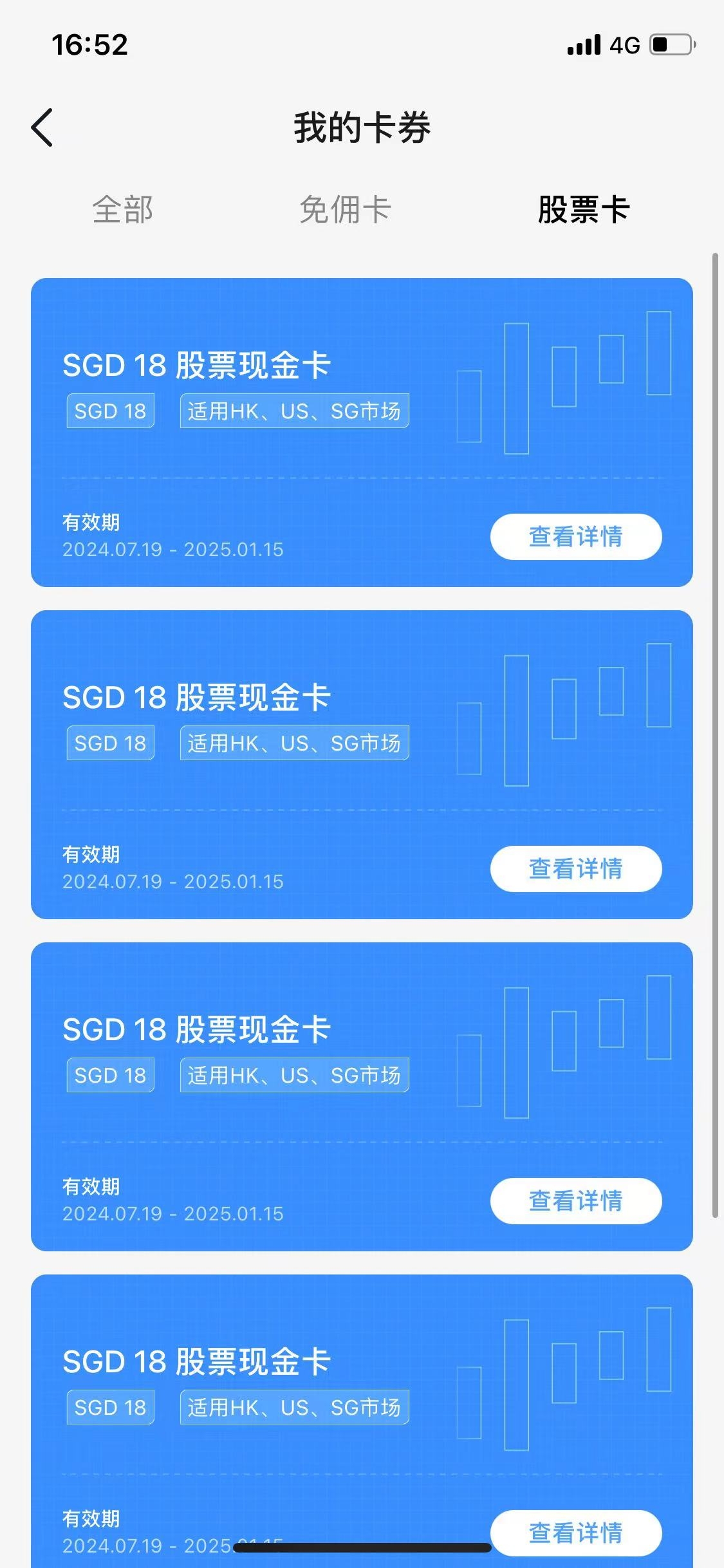 1到5个工作日会收到72SGD股票现金卡和5USD期权现金卡(共入金3400以上)