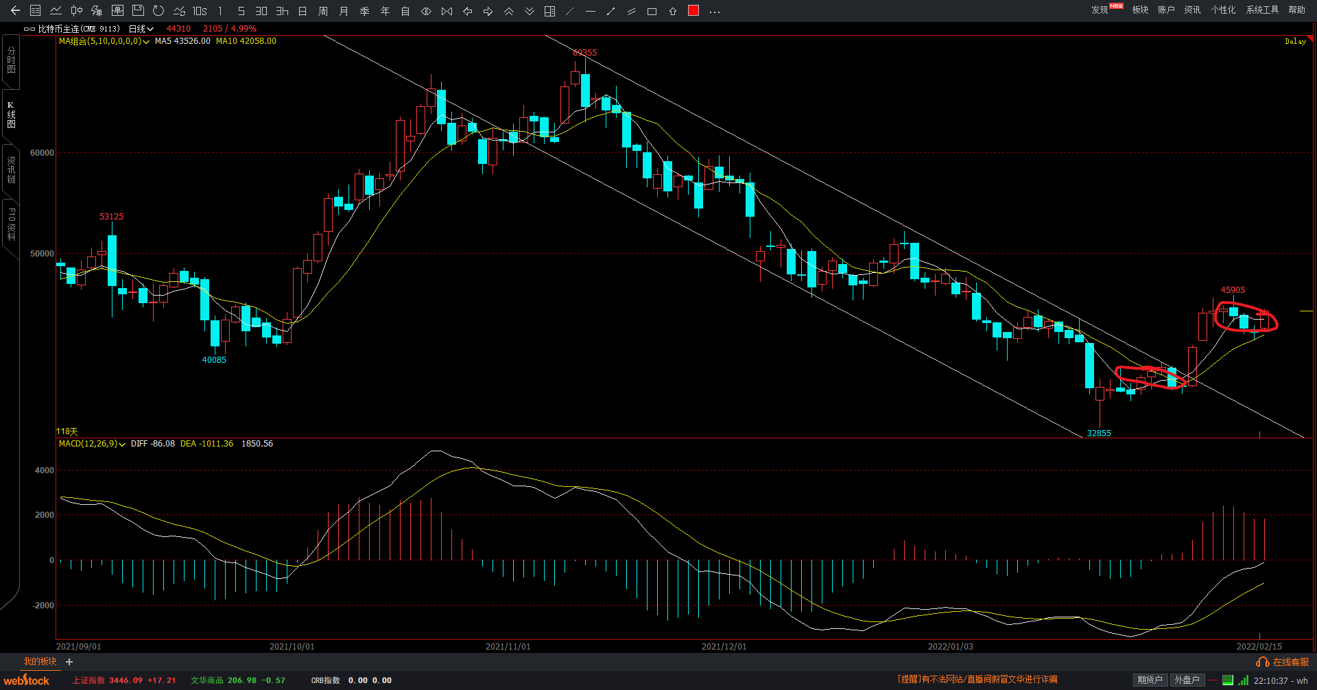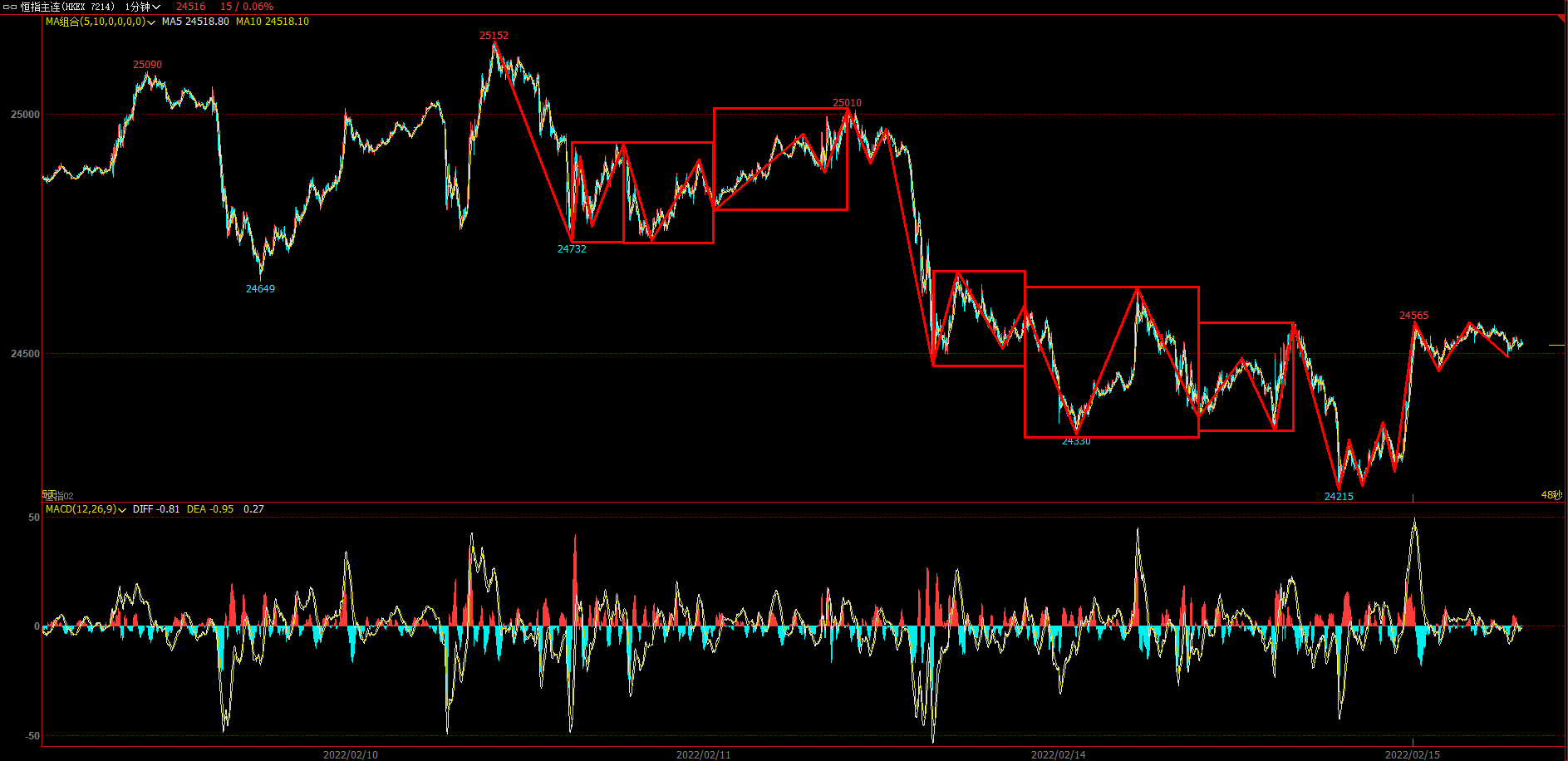 5F趋势下接1F趋势上。
