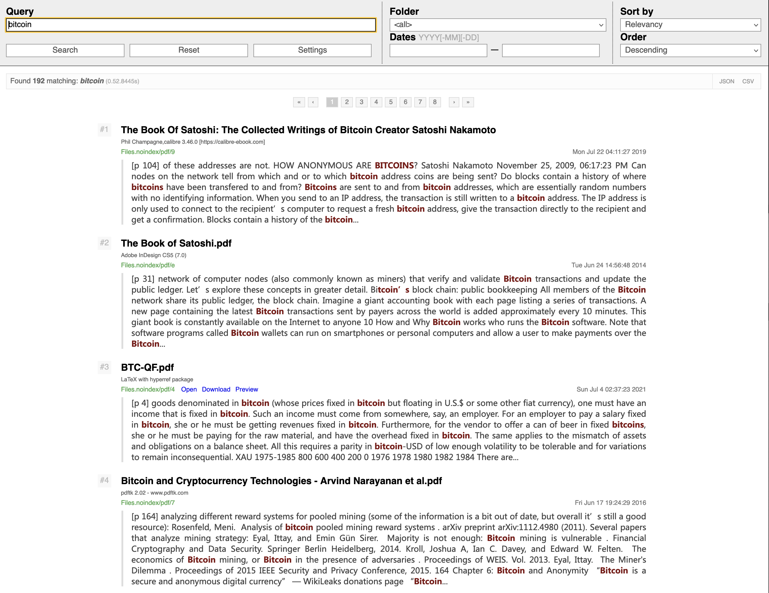 ,回车后就可以打开浏览器显示搜索结果(recollwebui),还可以在搜索结果中打开原文档查看和浏览。